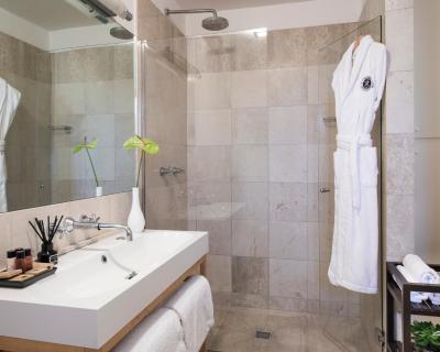 Cette élégante suite dispose de la climatisation, d'une grande terrasse meublée et d'une kitchenette entièrement équipée. Le logement comprend une pièce à vivre munie d’un canapé-lit et d’une télévision par satellite à écran plat ainsi qu’une salle de bains pourvue d’un sèche-cheveux et d’articles de toilette.