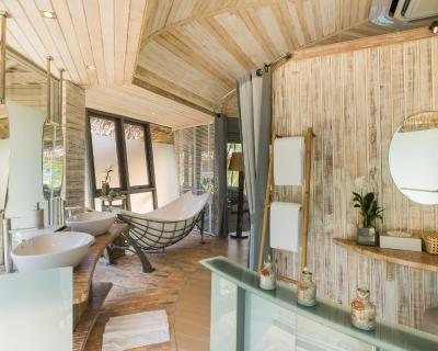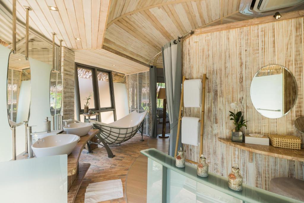 Featuring a suspension bridge, the villa comes with an outdoor seating area and a dining area. Rooms overlooking the trees at TreeHouse Villas Koh Yao - Adults Only provides a balcony, a grand king-sized bed and a flat-screen TV with HDMI docking input. An en suite bathroom includes a hammock-shaped bathtub.