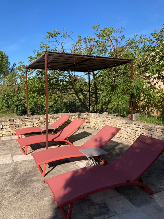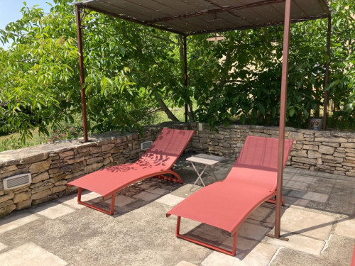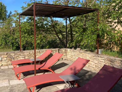 - d'une terrasse avec vue sur la campagne, coin jardin avec tables et chaises