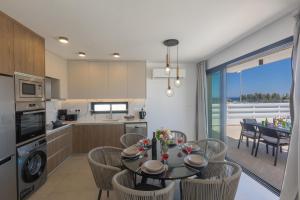 The villa features 3 bedrooms, 3 bathrooms, bed linen, towels, a flat-screen TV with satellite channels, a dining area, a fully equipped kitchen, and a terrace with sea views. Guests can enjoy a meal on an outdoor dining area while overlooking the garden views. This villa is allergy-free and non-smoking.