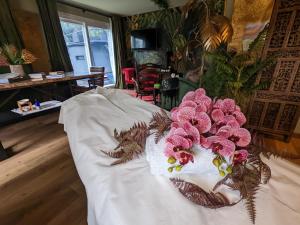 The boat features 1 bedroom, 1 bathroom, bed linen, towels, a flat-screen TV with streaming services, a dining area, a fully equipped kitchen, and a terrace with river views. A private entrance leads guests into the boat, where they can enjoy some wine or champagne and chocolates or cookies. This boat is allergy-free and non-smoking.