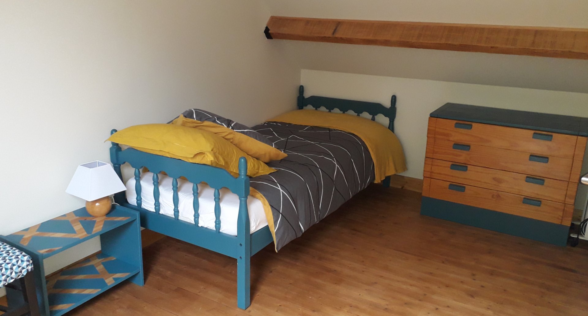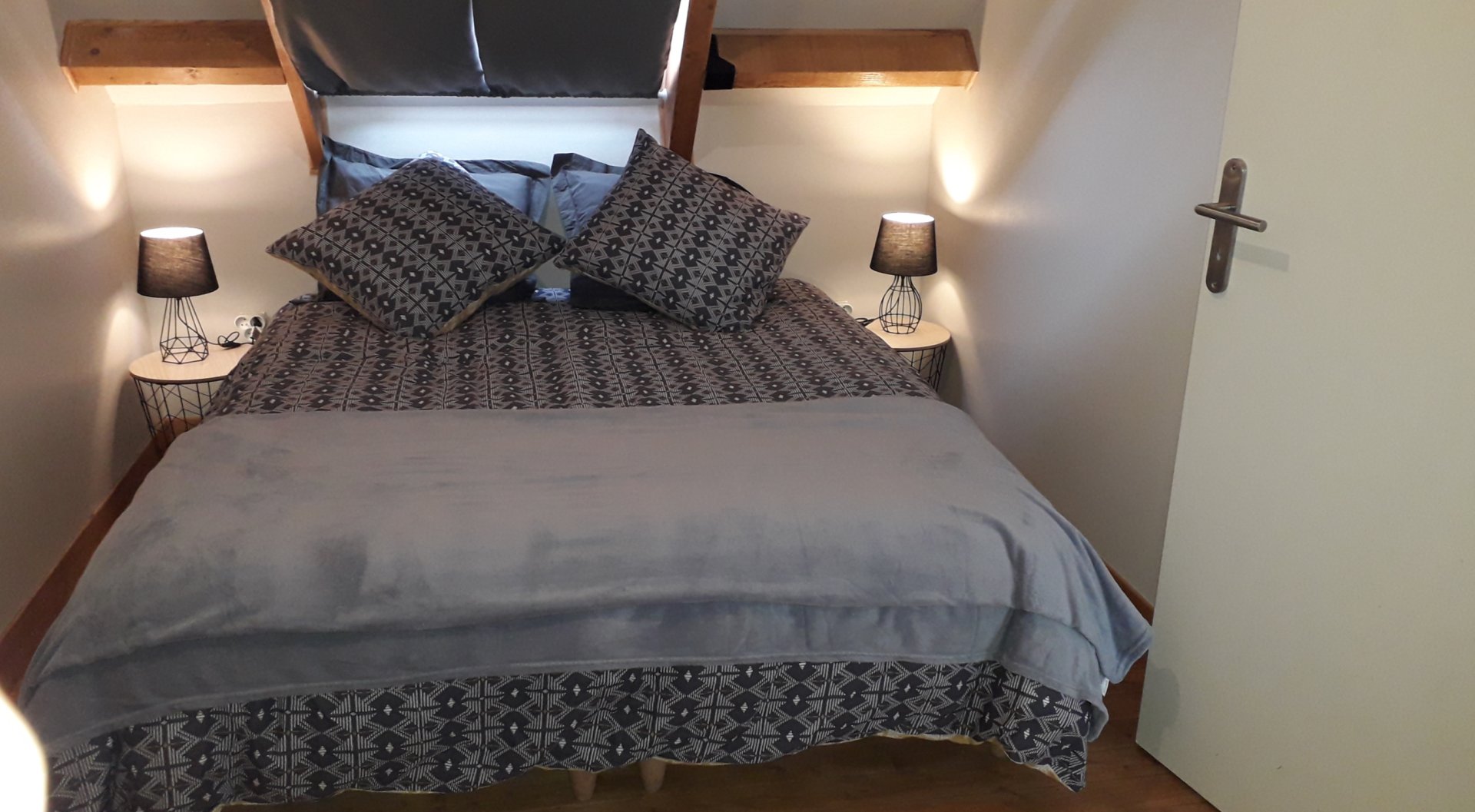 - chambre 2 : 2 lits de 190x80. Matelas très confortable. Sommier à lattes. 2 oreillers et 2 couettes par lit. Une commode, 1 portant avec cintre. Radiateur a bain d’huile.