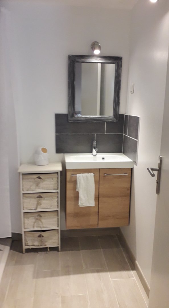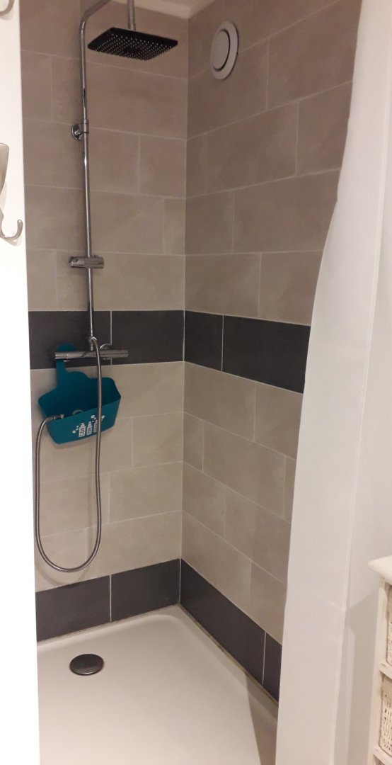 - salle de bain / toilette : 1 douche de 120x90 cm, un lavabo, toilette, rangement, sèche-serviette électrique. Essuie-main + tapis de bain fourni. Le linge de toilette (1 drap de bain + 1 serviette de toilette / personne) est compris dans le prix. Merci de ne pas les utiliser pour la plage !