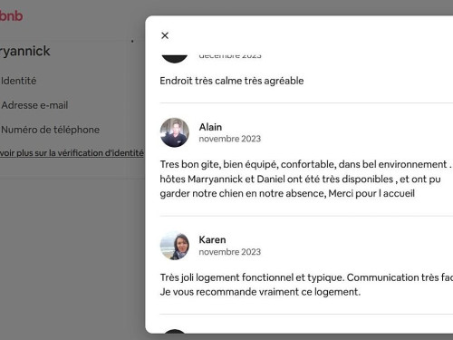 - chambre 1 : lit 2 personnes, matelas très confortable, sommier à lattes individuel l’un de l’autre et articulés tête et pied. 4 oreillers et 2 couettes de 180x200. 2 étagères de 2,40 m, 1 portant avec cintre pour vous permettre de vider votre valise. Radiateur a bain d’huile.