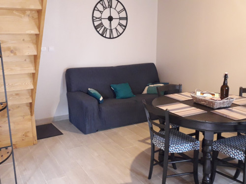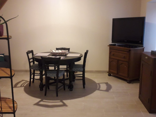 - salon : une banquette (non convertible), table 4 places, TV, jeux de sociétés (dans le meuble sous la TV)