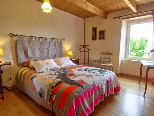 À l'étage : 3 chambres avec lits fait. 1 WC et lavabo.