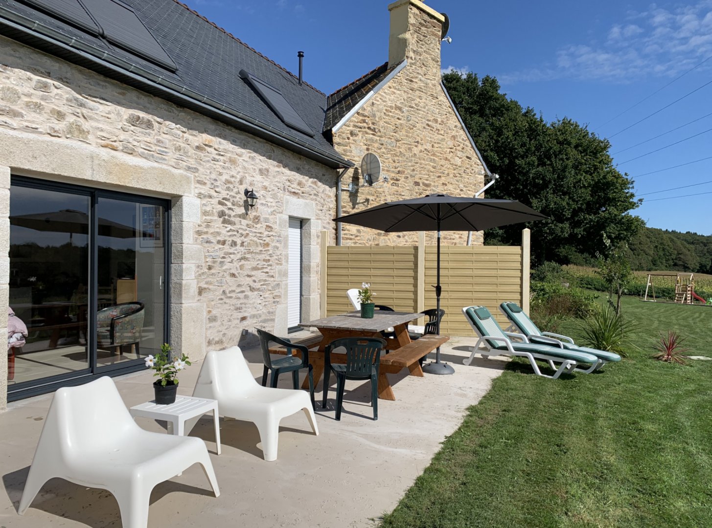 Très bien situé... à proximité de belles villes à visiter et au calme des grandes vagues touristiques. Des forêts et des champs comme vue pour le petit déjeuné... un coin jardin et une air de jeux pour les enfants.