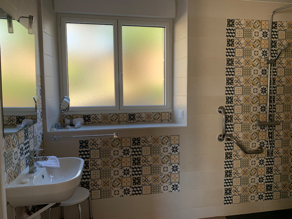 Douche à l'italienne, Lavabo, Sèche-cheveux, Sèche-serviettes