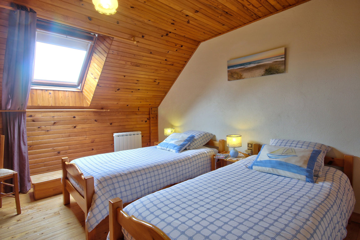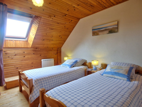 A l'étage 2 chambres avec lits fait. +1 lit bébé et tout ce qu'il faut pour un bébé, chaise haute, baignoire, barrière de sécurité.