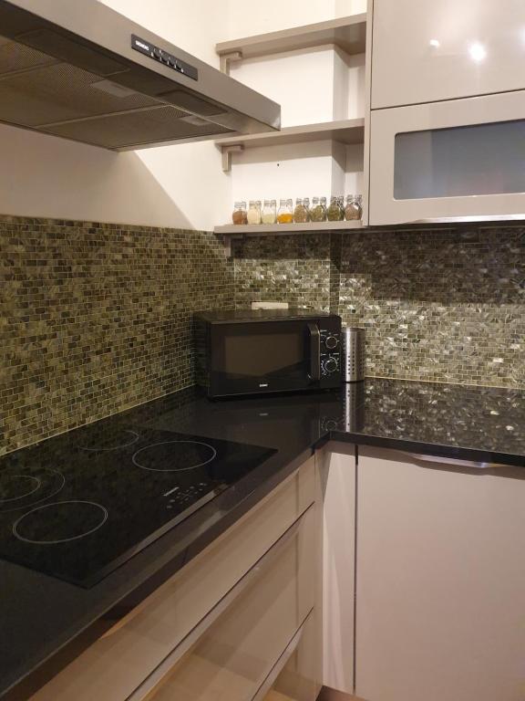 Cet appartement se compose de 1 chambre, d'un salon, d'une cuisine entièrement équipée avec un réfrigérateur et une machine à café, ainsi que de 1 salle de bains avec une douche et des articles de toilette gratuits. Une télévision à écran plat avec les chaînes du câble est à disposition.