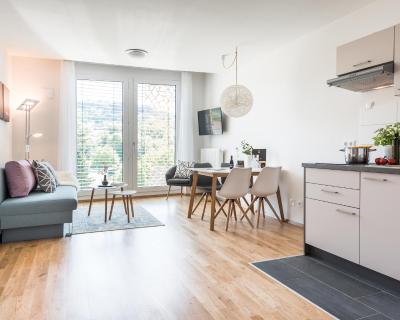Sur place, des places de parking payantes sont disponibles dans le garage souterrain doté d'une borne de recharge pour les voitures électriques. La région de Fribourg et notamment la charmante Forêt-Noire offrent un cadre idéal pour pratiquer la randonnée, le vélo et les sports d'hiver. Enfin, le parc d'attractions Europa-Park, à 40 km, est facilement accessible par les transports en commun.