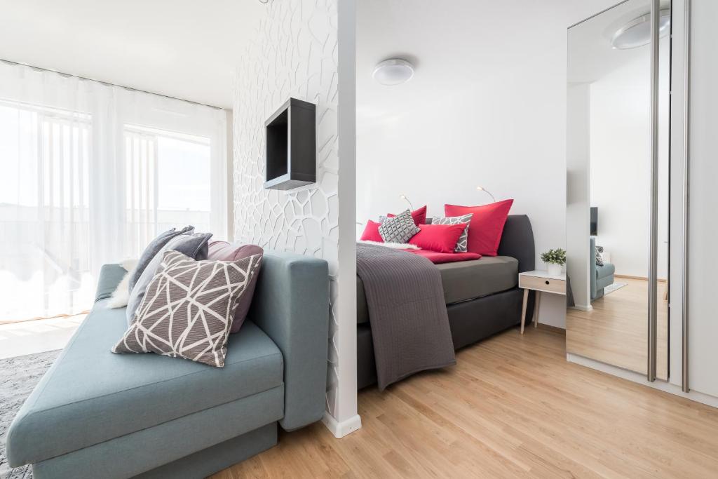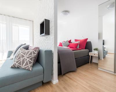 Chaque appartement dispose d'une cuisine entièrement équipée avec un coin repas spacieux, d'une machine à café, d'un grille-pain, d'une bouilloire électrique et d'un micro-ondes. Après une longue journée de visites, vous pourrez vous détendre devant la télévision à écran plat de 102 cm ou écouter de la musique sur le lecteur CD ou la radio. La salle de bains privative est pourvue d'une douche, d'un sèche-cheveux et d'articles de toilette gratuits. Du matériel de repassage, du linge de lit et des serviettes sont fournis. En outre, certains logements sont agrémentés d'un balcon orienté au sud-ouest.