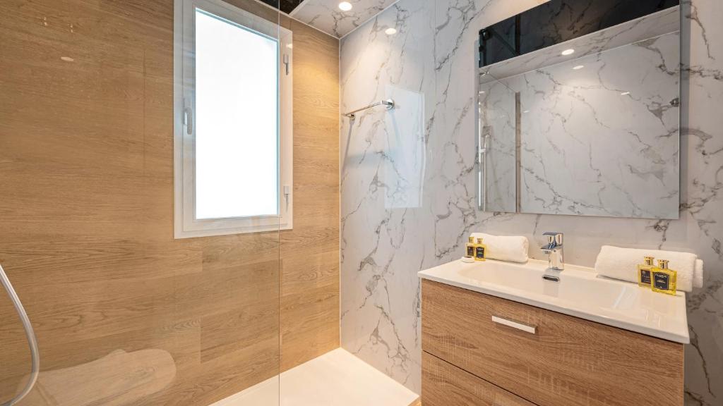 The spacious apartment with a terrace and sea views features 3 bedrooms, a living room, a flat-screen TV, an equipped kitchen with a dishwasher and an oven, and 3 bathrooms with a hot tub. Guests can take in the views of the pool from the patio, which also has outdoor furniture. The apartment offers bed linen, towels and laundry service.