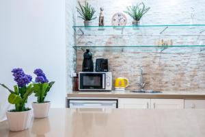 Diese Ferienwohnung mit Klimaanlage besteht aus 1 Schlafzimmer, einem Wohnzimmer, einer voll ausgestatteten Küche mit einem Kühlschrank und einer Kaffeemaschine sowie 1 Badezimmer mit einer Dusche und einem Haartrockner. In dieser Ferienwohnung werden Handtücher und Bettwäsche angeboten.