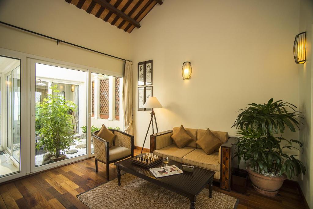 Die geräumigen und eleganten Unterkünfte im vietnamesischen, französischen und japanischen Stil bieten jeweils ein Sofa, einen Kleiderschrank und ein Bügeleisen/-brett. Auch ein eigener Balkon und Kabel-TV sind vorhanden. Jedes Zimmer verfügt über ein eigenes Bad mit Badewanne/Dusche, Haartrockner und Hausschuhen. Auf Anfrage können Sie auch den Zimmerservice in Anspruch nehmen.