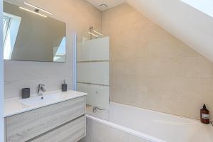 Disposant d’une terrasse et offrant une vue sur le jardin, cette maison de vacances comprend 4 chambres, un salon, une télévision, une cuisine équipée avec un réfrigérateur et un lave-vaisselle, ainsi que 2 salles de bains avec une douche. Cet hébergement met à votre disposition des serviettes et du linge de lit.