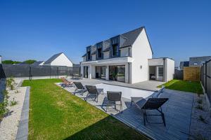 L’hébergement Villa Almaé - Maison neuve proche plages avec piscine chauffée vous accueille à respectivement 23 km et 24 km de ces lieux d’intérêt : Port de Plaisance de Vannes et Gare de Vannes. Il propose une connexion Wi-Fi gratuite et une piscine extérieure ouverte en saison. Cette maison de vacances possède une piscine privée, un jardin et un parking privé gratuit.
