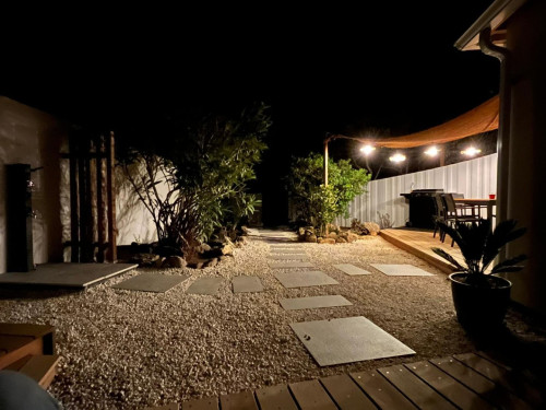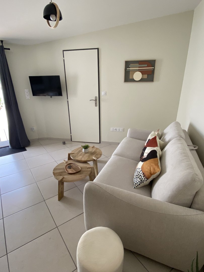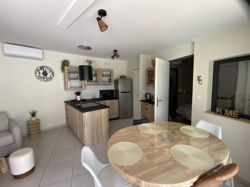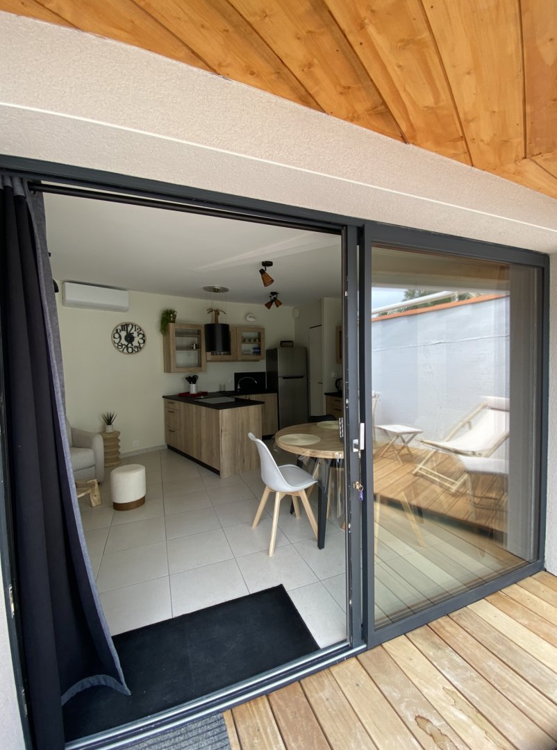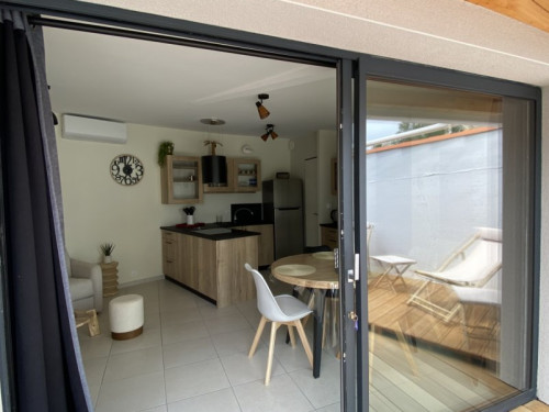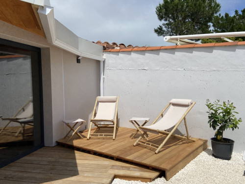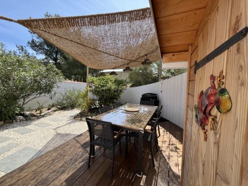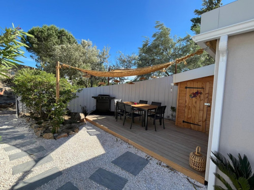Elle dispose d'un agréable jardin clos végétalisé avec terrasse bois coin détente, une terrasse bois coin repas disposant d'une plancha électrique.