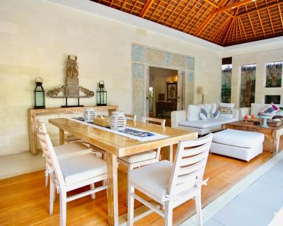 The en-suite private open-air bathroom surrounded by a tropical garden creates a tropical living experience. The villa staff provides additional services with small fees such as laundry, dry cleaning even grocery shopping. With affordable fees, the spa on our premises offers pleasant treatments.