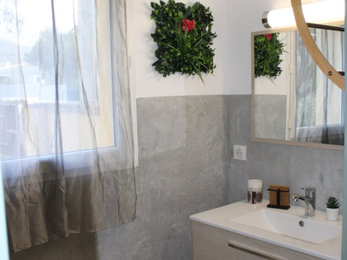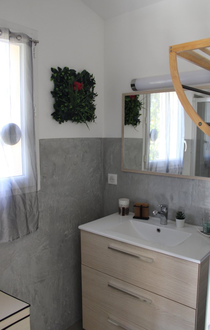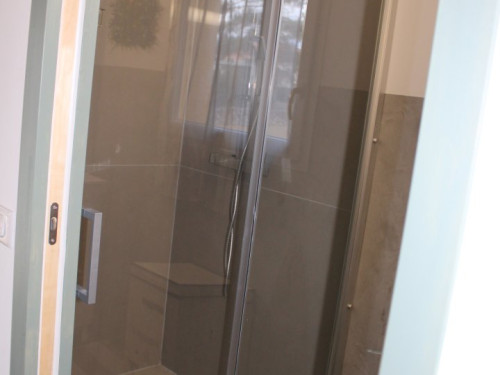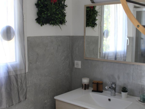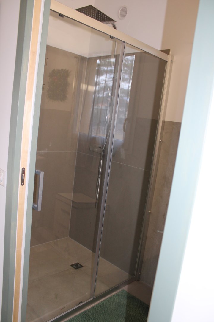- 1 salle de bain avec une douche spacieuse et lavabo (sèche-cheveux et lisseur)