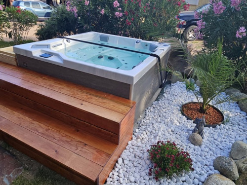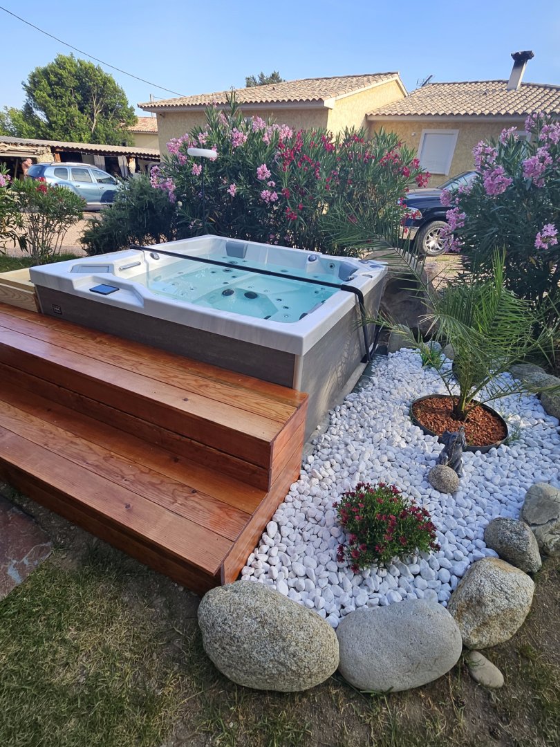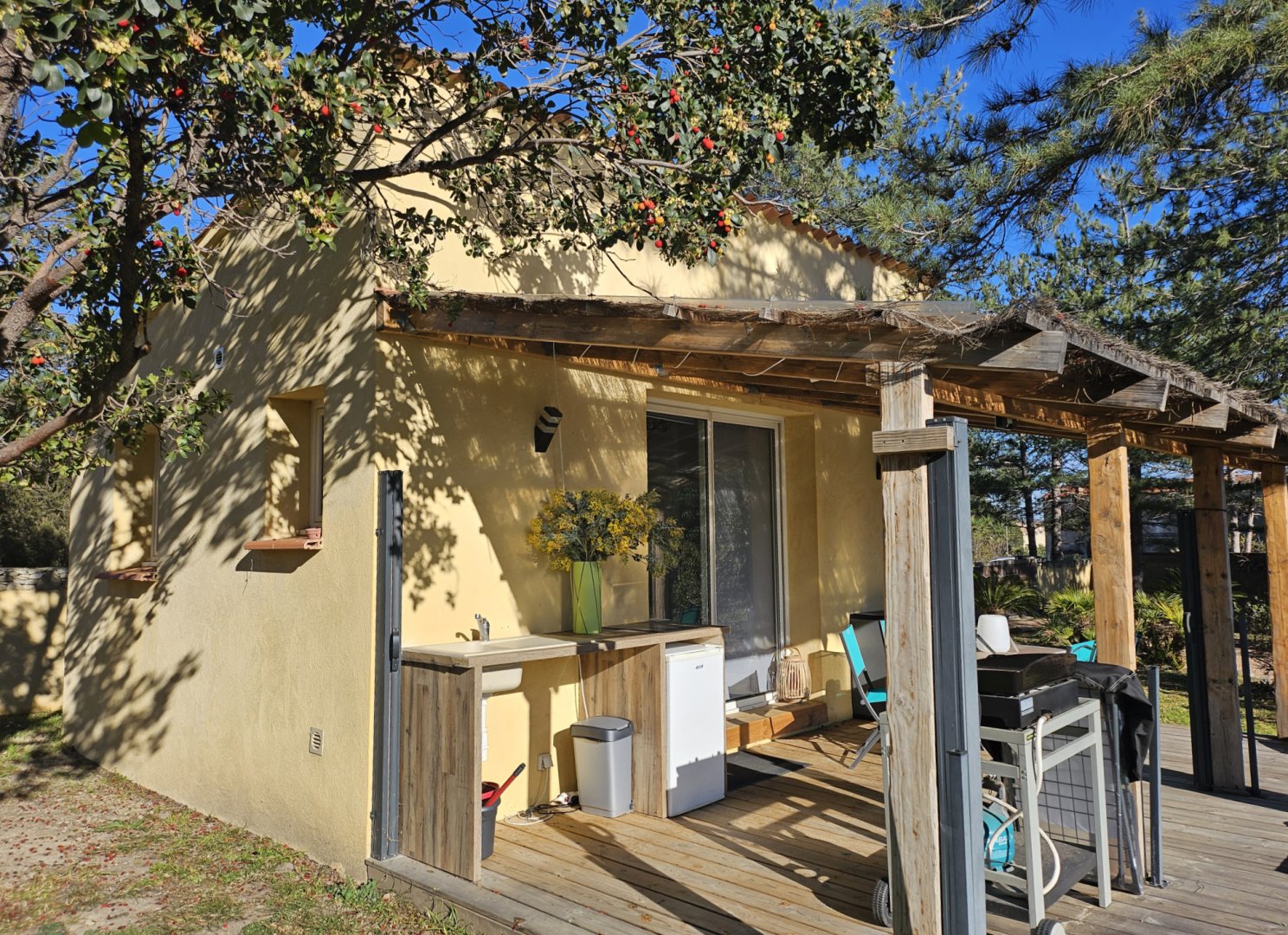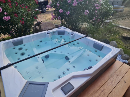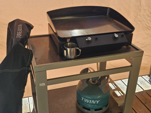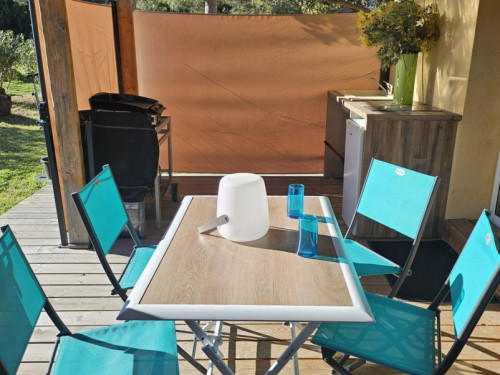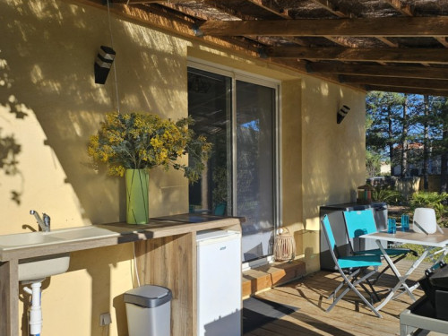 - 1 cuisine extérieure de 20 m² couverte avec plancha, réfrigérateur, évier, lave-linge et plaque de cuisson