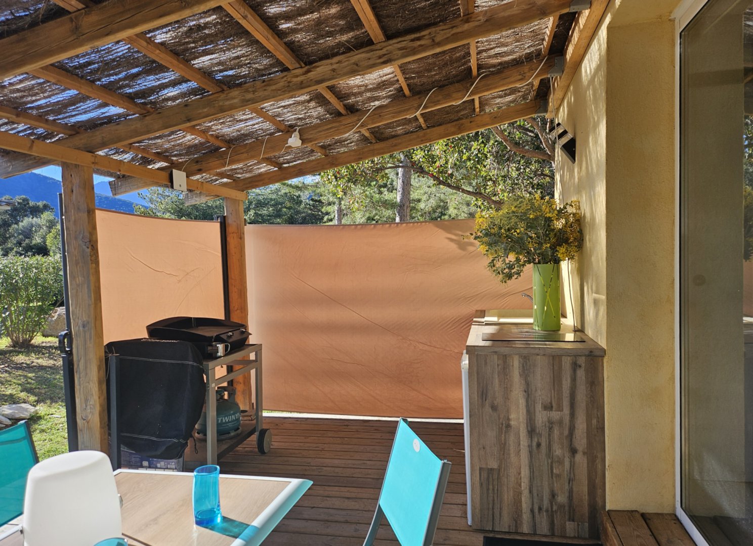 - 1 salon extérieur en pierres de Bonifacio avec vue sur les montagnes