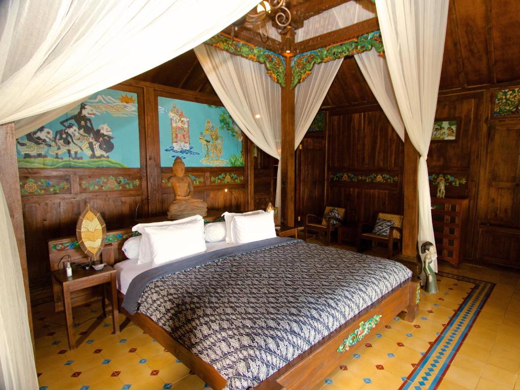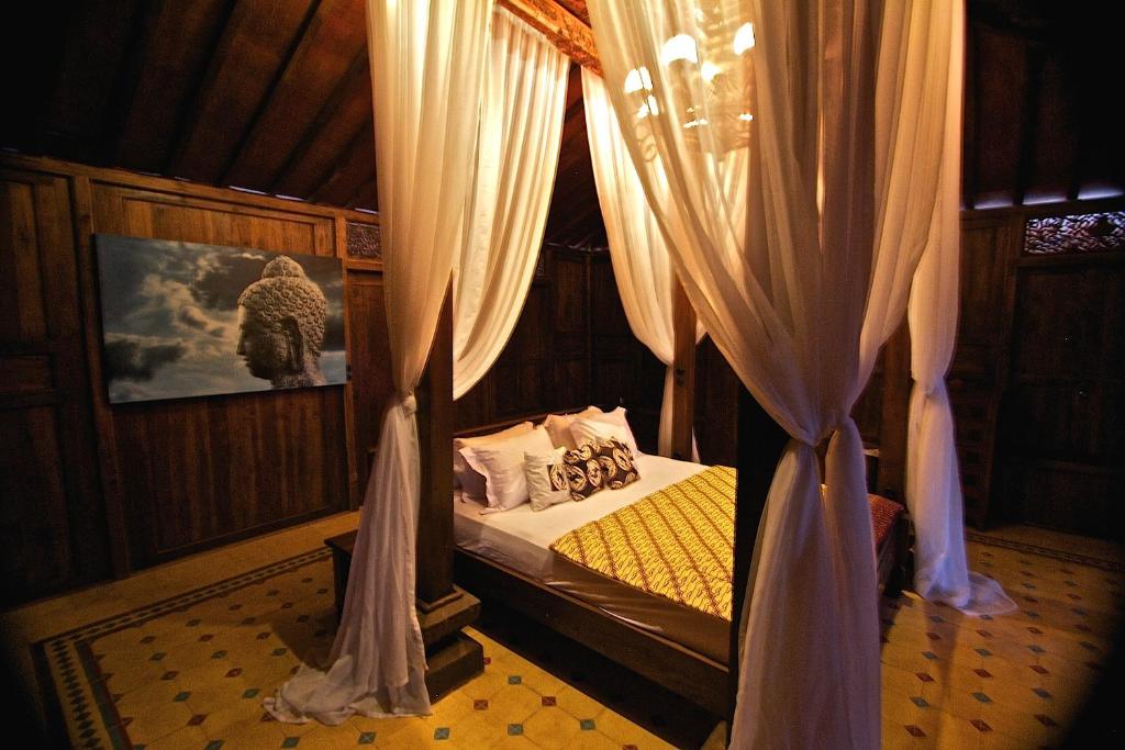 Chaque villa dispose d'une piscine privée et d'une terrasse pour se détendre. Les chambres occupent un grand Joglo (maison traditionnelle), orné d'œuvres d'art et de meubles anciens du centre de Java, ainsi que d'un minibar. Les salles de bains privatives sont pourvues d'une baignoire et d'une douche.