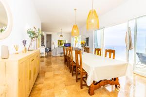 Cette villa comporte 4 chambres, 3 salles de bains, du linge de lit, des serviettes, une télévision, une cuisine entièrement équipée et une terrasse offrant une vue sur la mer.