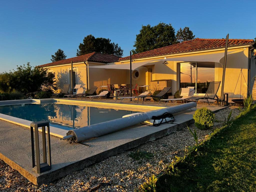 Situated in Pontours, Villa coucher de soleil features accommodation with private pool, free WiFi and free private parking for guests who drive. The property features garden views and is 28 km from Bergerac Train Station and 48 km from Sarlat-la-Canéda Train Station. Lolivarie Golf Course is 24 km away and Domaine de la Marterie Golf Course is 35 km from the villa.
