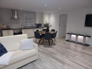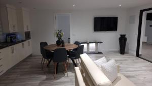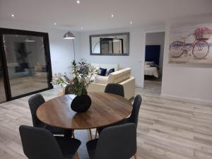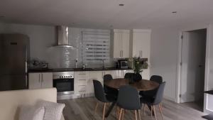The spacious villa with a terrace and mountain views features 2 bedrooms, a living room, a flat-screen TV, an equipped kitchen with an oven and a microwave, and 2 bathrooms with a walk-in shower. A private entrance leads guests into the villa, where they can enjoy some wine or champagne and fruits. The property has an outdoor dining area.