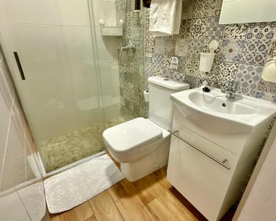 Ein voll ausgestattetes eigenes Badezimmer mit einer Dusche und kostenlosen Pflegeprodukten ist vorhanden.