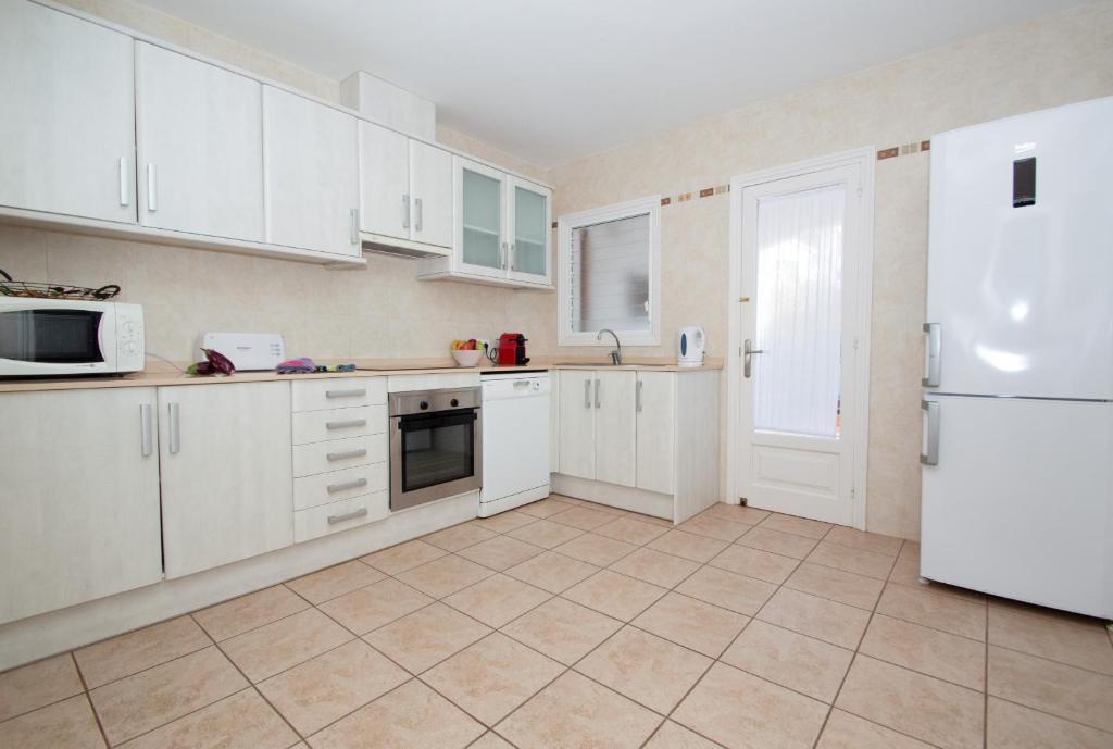 The spacious villa is fitted with 5 bedrooms, 3 bathrooms, bed linen, towels, a TV with satellite channels, a fully equipped kitchen, and a terrace with pool views.