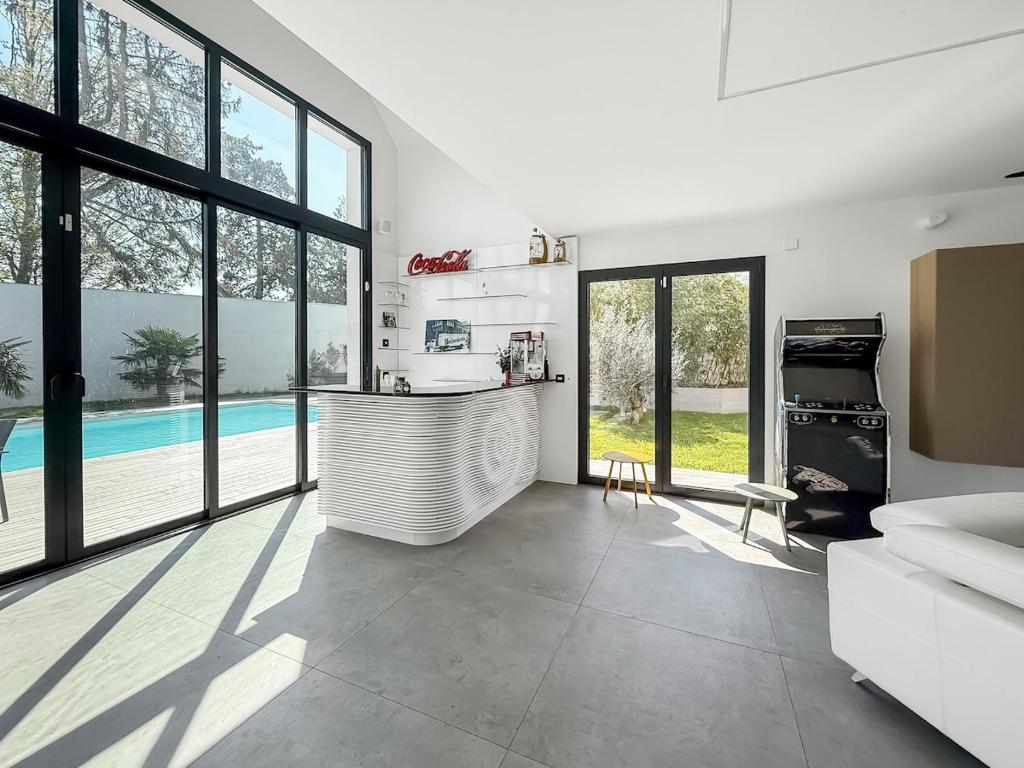 Featuring air-conditioned accommodation with a private pool, Villa haut de gamme avec Piscine, Bar et Cinéma is located in Pierre-Levée. The property is set 26 km from Val d'Europe RER Station, 26 km from Disneyland Paris and 45 km from Domaine de Chaalis. This pet-friendly villa also has free WiFi.