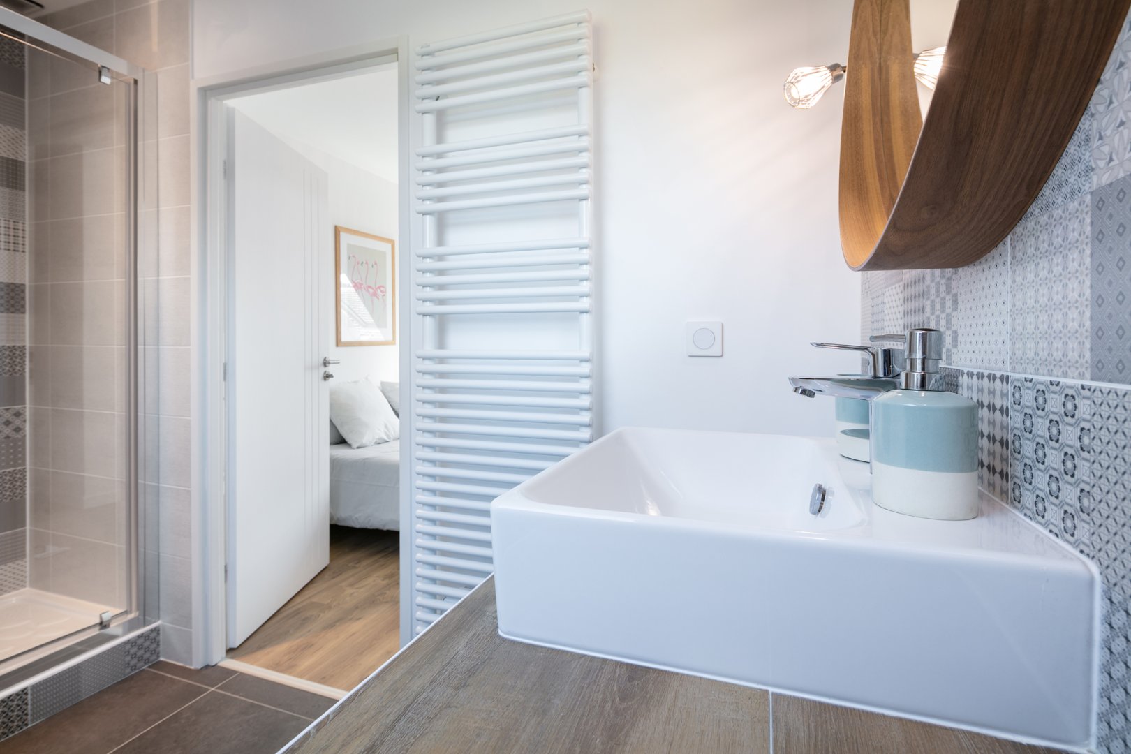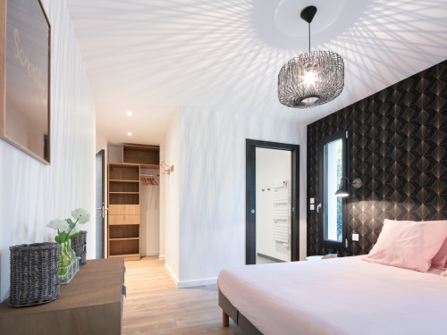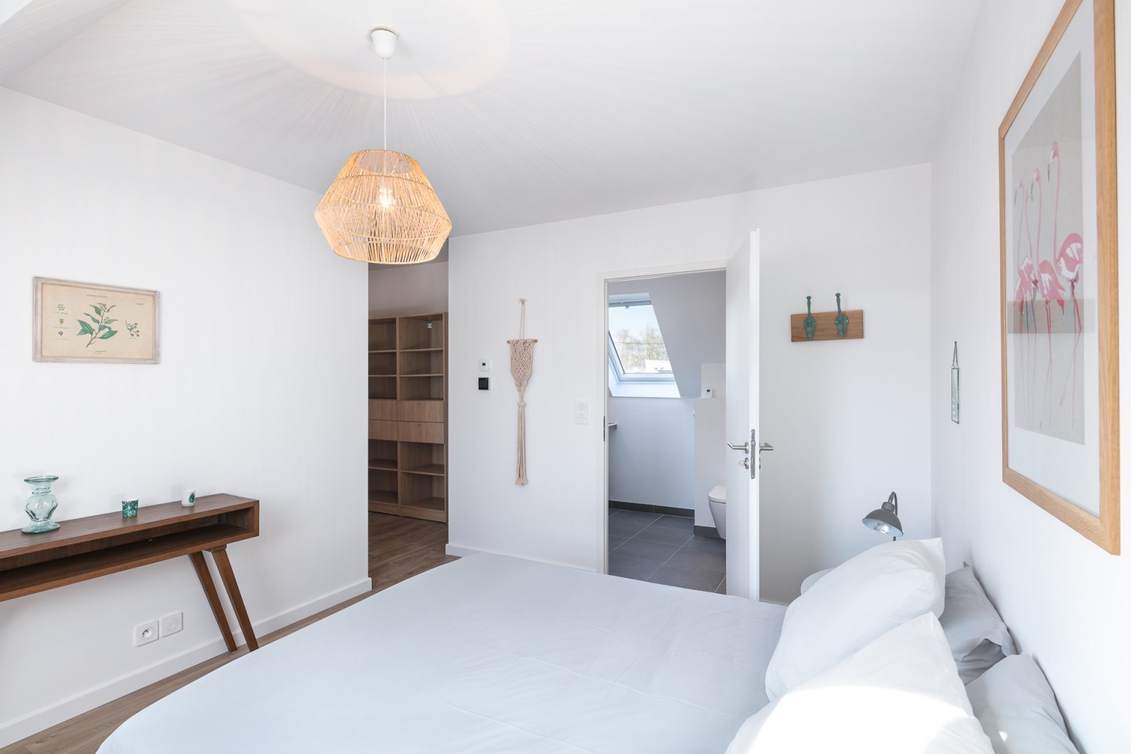 - 4 bedrooms: a master suite on the ground floor with dressing room and private bathroom, another suite upstairs with dressing room and bathroom, a bedroom with sea view and a bedroom with 2 bunk beds