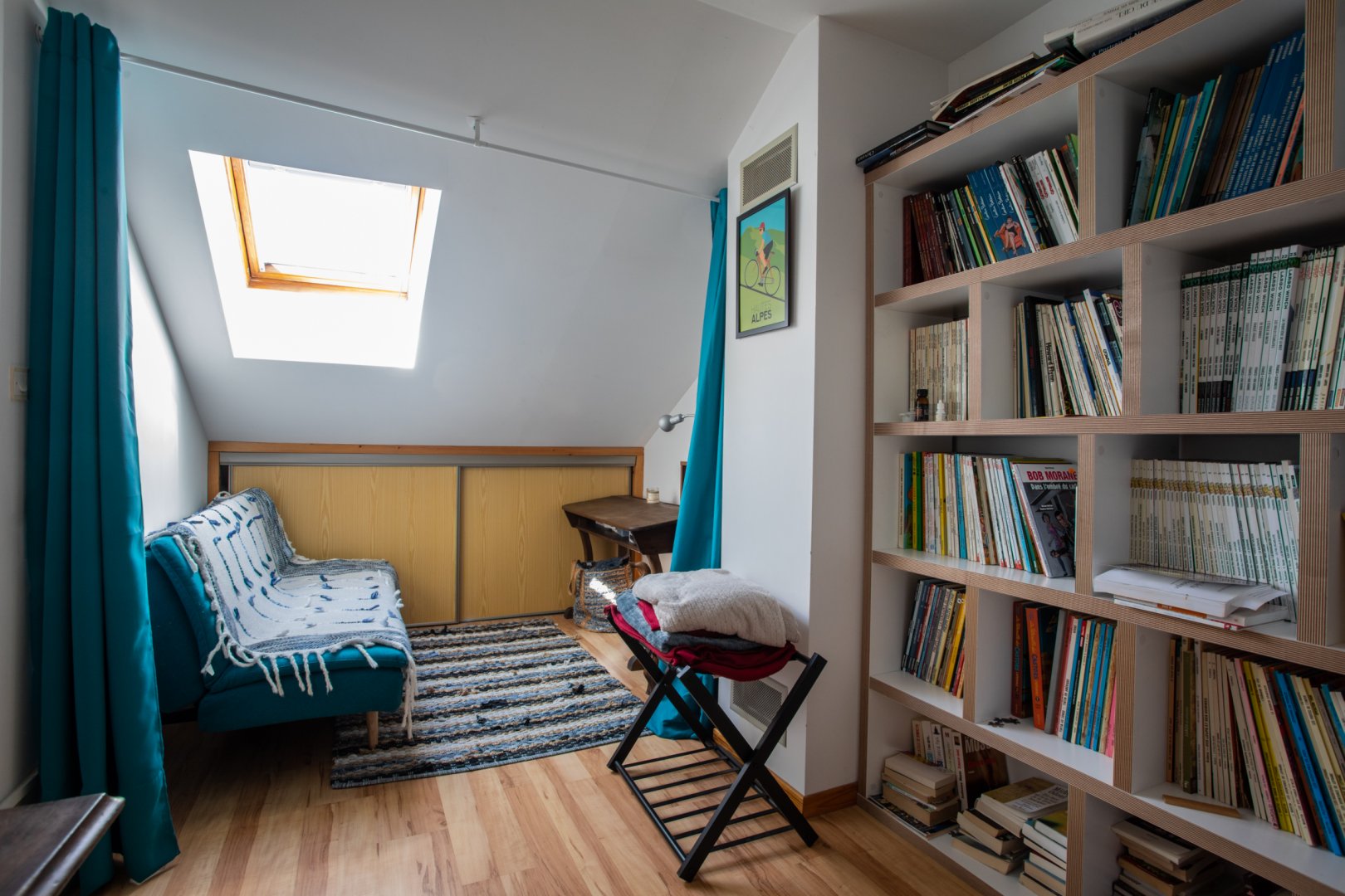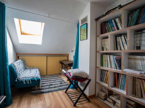 - coin bibliothèque (centaines de BD disponibles) avec canapé convertible -