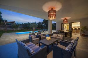 Cette villa comporte 4 chambres, 3 salles de bains, du linge de lit, des serviettes, une télévision avec les chaînes du satellite, une cuisine entièrement équipée et une terrasse offrant une vue sur la piscine.
