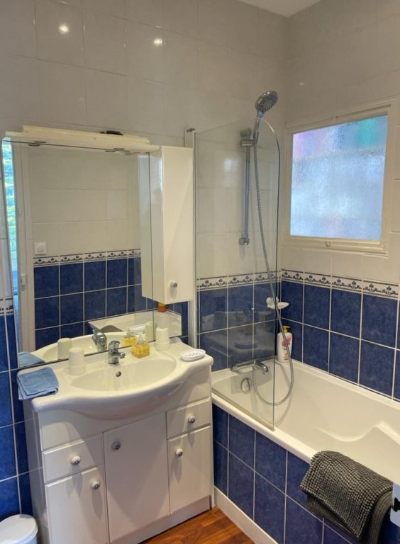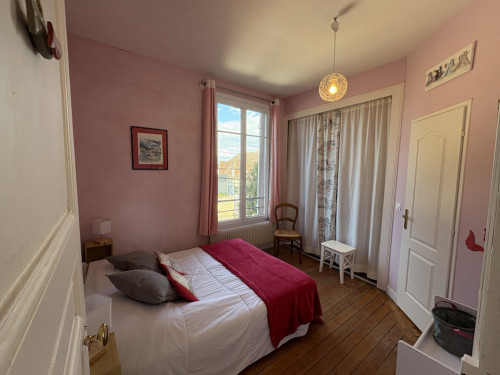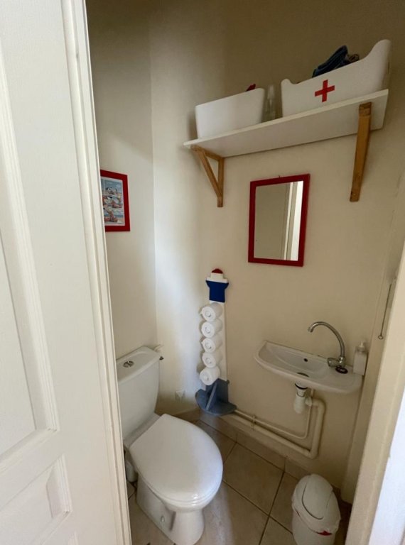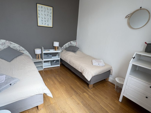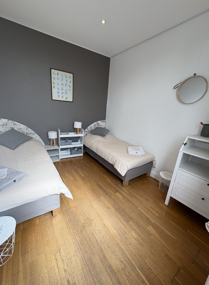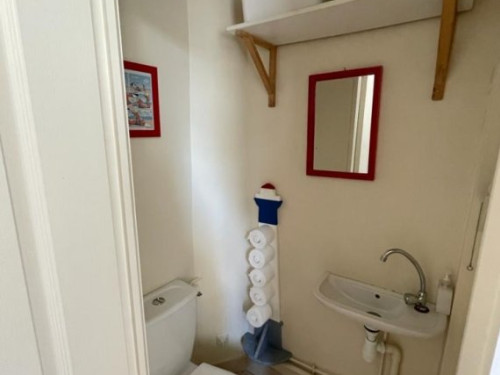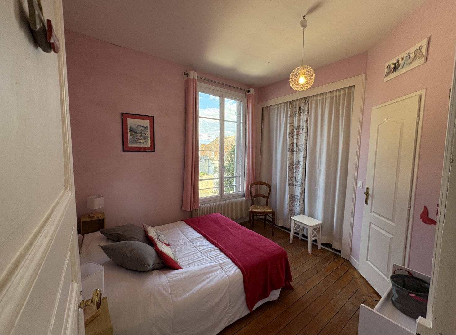 Au 1er étage : 1 grande chambre avec un lit double (160x200) vue sur mer ; 1 chambre avec un lit simple (90x190) vue sur mer et une petite salle de douche attenante ; 1 chambre avec 2 lits simples (2x 80x190) pouvant être accrochés pour faire un lit double ; une salle de bain avec baignoire et des toilettes indépendantes.