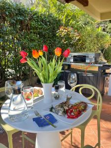 Cette villa avec climatisation se compose de 4 chambres, d'un salon, d'une cuisine entièrement équipée avec un réfrigérateur et une machine à café, ainsi que de 3 salles de bains avec un bidet et une douche. Des serviettes et du linge de lit sont à disposition.