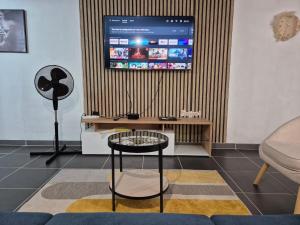 The villa features 2 bedrooms, a fully equipped kitchen with kitchenware, a washing machine, and 1 bathroom. A flat-screen TV is available.