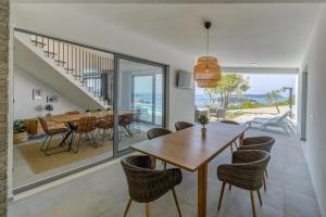 The spacious villa is equipped with 4 bedrooms, 4 bathrooms, bed linen, towels, a flat-screen TV with streaming services, a dining area, a fully equipped kitchen, and a terrace with sea views. Guests can enjoy a meal on an outdoor dining area while overlooking the pool views. This villa is allergy-free and non-smoking.