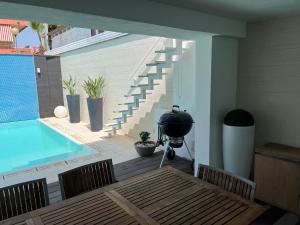 The spacious villa is fitted with 3 bedrooms, 3 bathrooms, bed linen, towels, a flat-screen TV with streaming services, a dining area, a fully equipped kitchen, and a terrace with pool views. A private entrance leads guests into the villa, where they can enjoy some fruits. The property has an outdoor dining area.