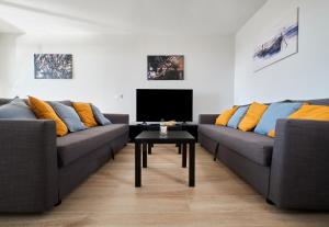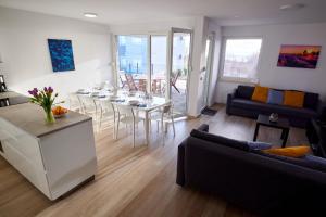 The spacious villa with a terrace and sea views has 5 bedrooms, a living room, a flat-screen TV, an equipped kitchen with a dishwasher and an oven, and 4 bathrooms with a walk-in shower. Towels and bed linen are available in the villa. The property has an outdoor dining area.