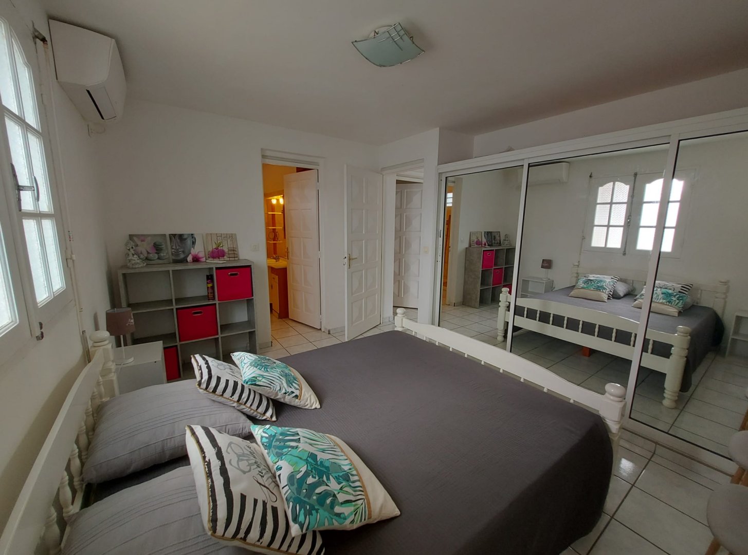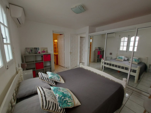 Nous vous proposons 3 grandes chambres climatisées, équipées de lits 160*200 et un lit d'appoint supplémentaire pour une personne, 2 salles de bains, 3 WC, un grand salon salle à manger, à l'étage vous bénéficier d'une loggia avec petite vue mer, d'un dressing pour ranger vos affaires.