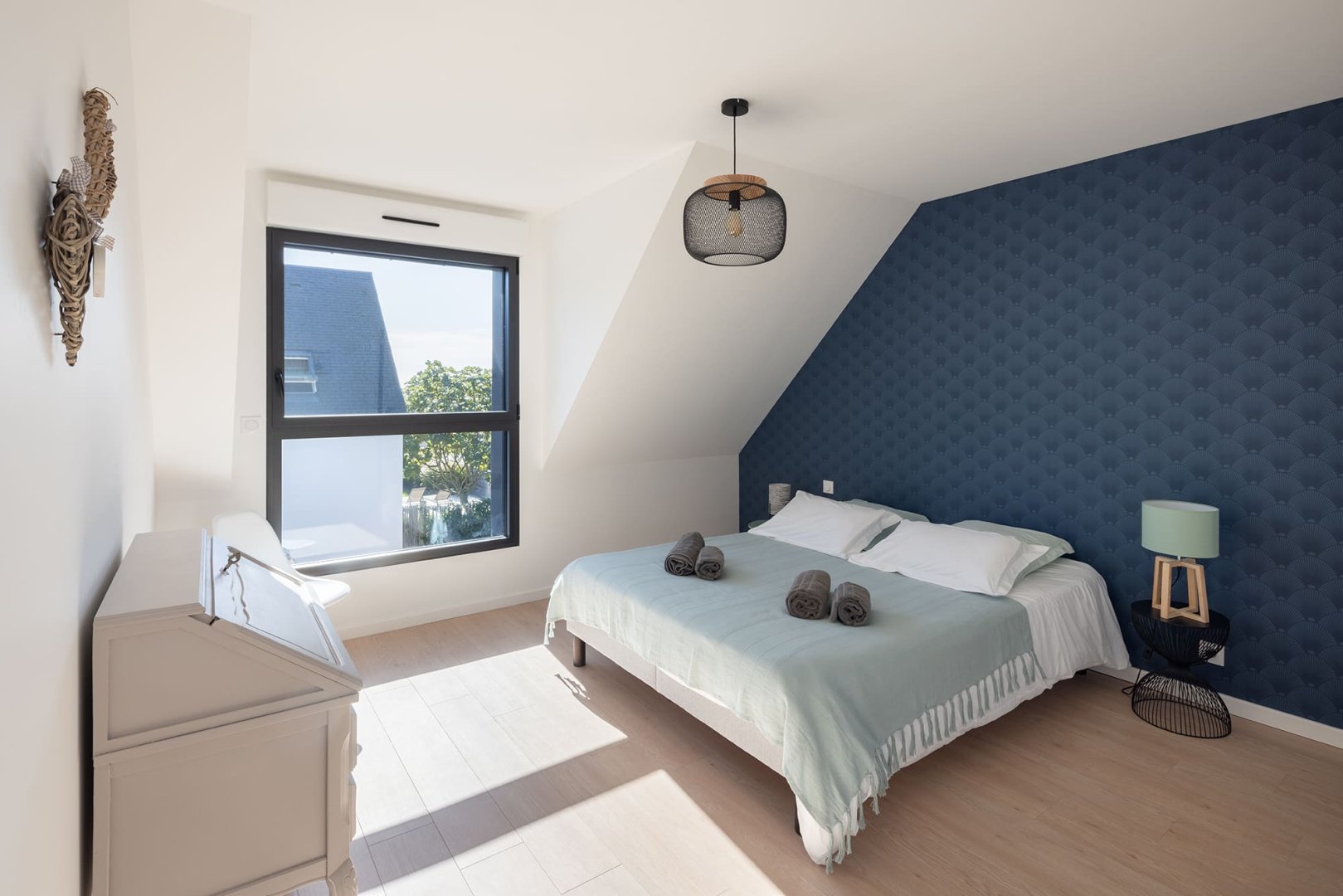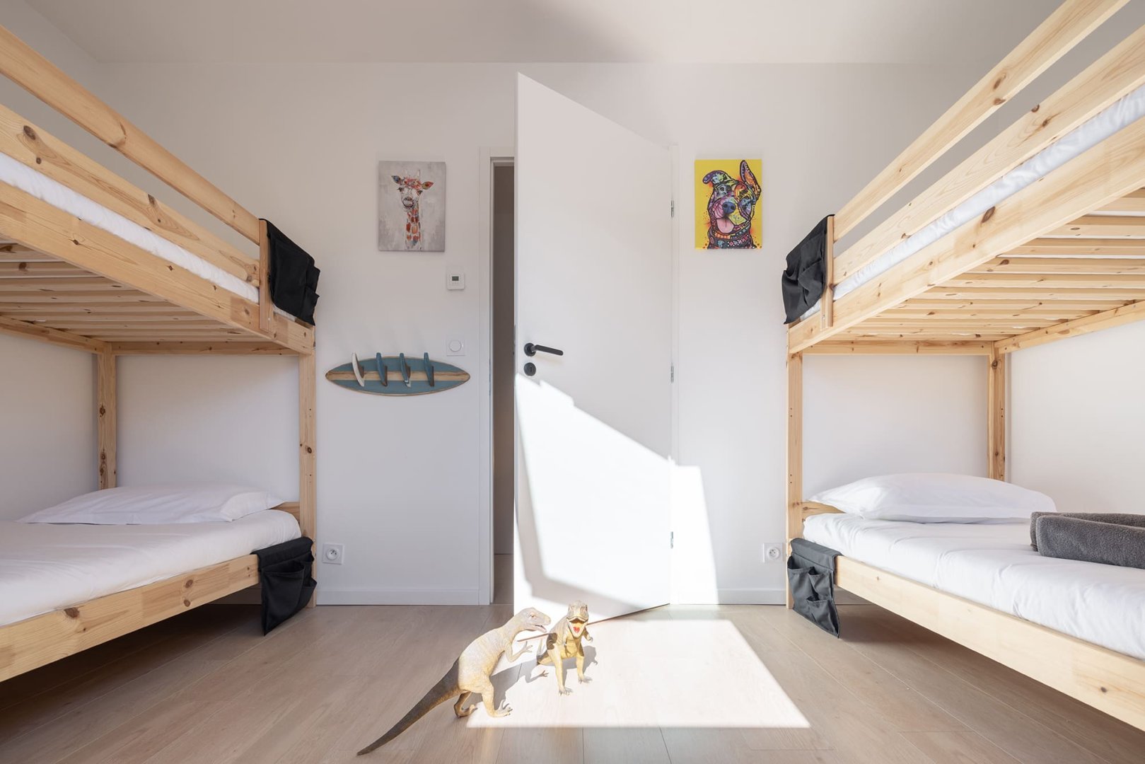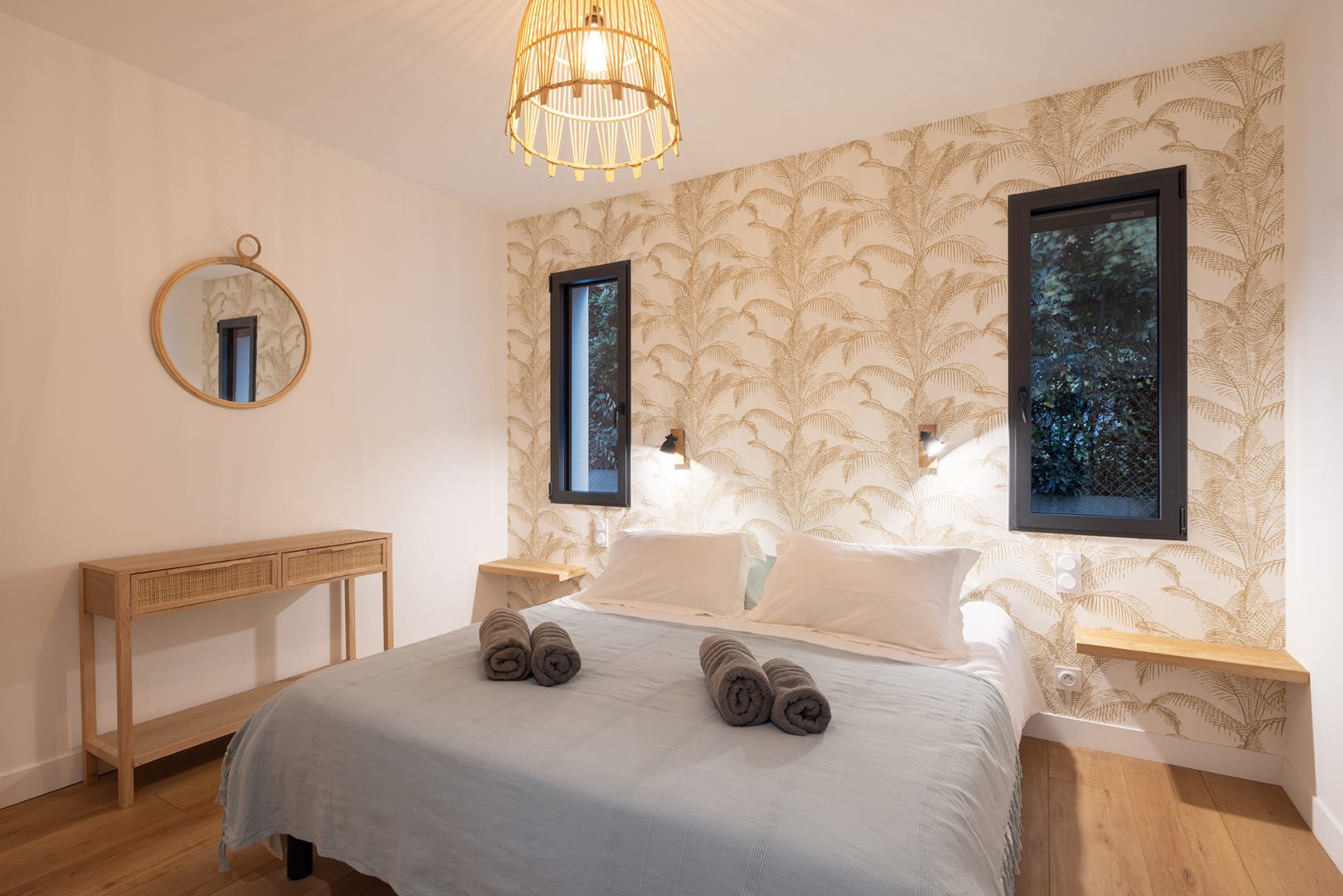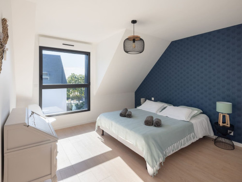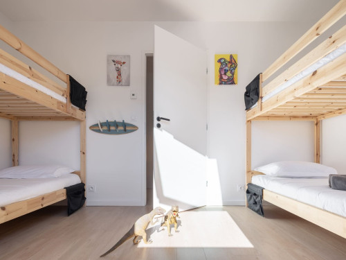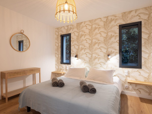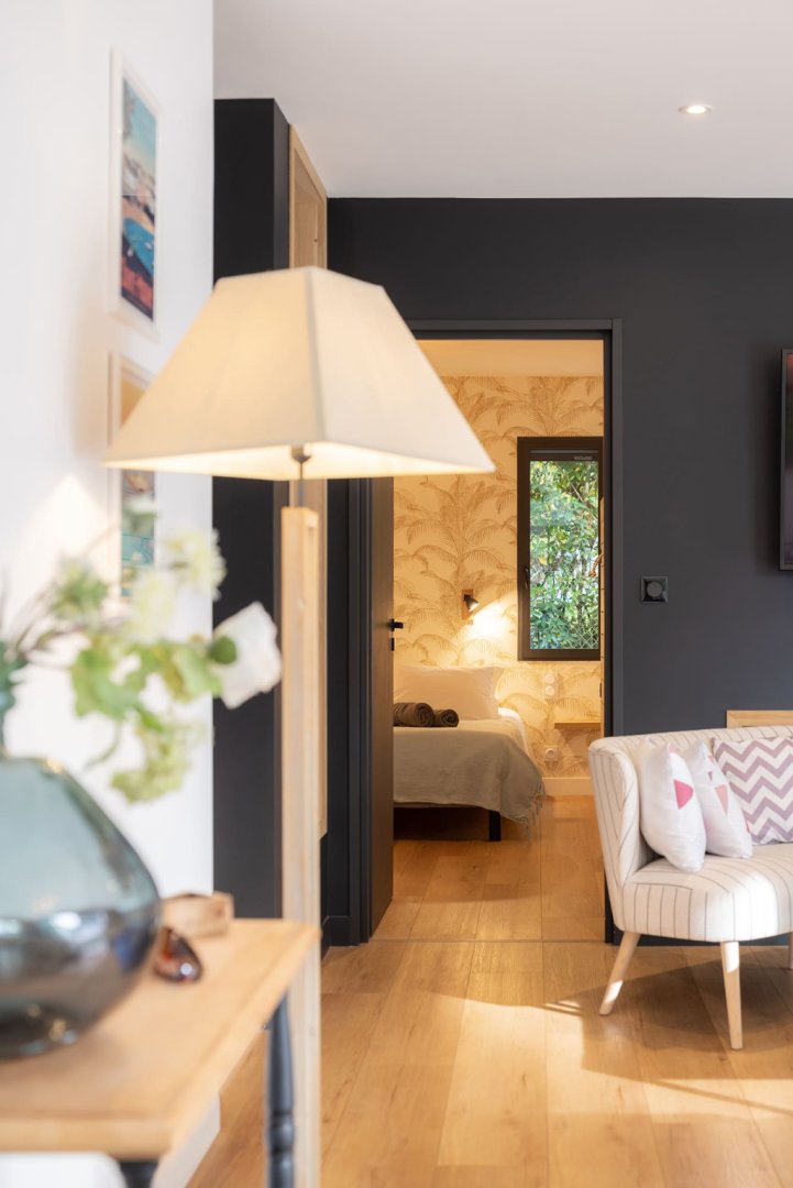 - 4 chambres : une suite parentale au rez-de-chaussée avec dressing et salle d’eau privative, une autre suite à l’étage avec vue sur mer, dressing et salle d’eau privative, une chambre confortable et une chambre avec 2 lits superposés