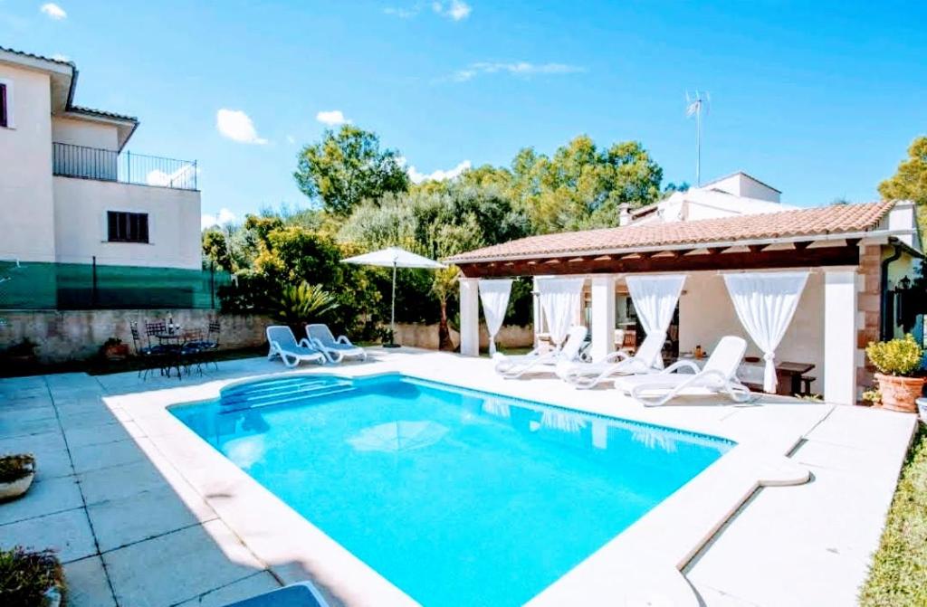 Featuring air-conditioned accommodation with a private pool, sea view and a terrace, Villa Palomita Con Piscina Privada is located in Son Serra de Marina. The property features pool and garden views, and is 14 km from Natural Park S'Albufera de Mallorca. Free WiFi is available throughout the property and Platja de s’Home Mort Beach is less than 1 km away.
