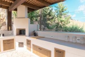 The villa with a terrace and sea views features 3 bedrooms, a living room, a flat-screen TV, an equipped kitchen with a dishwasher and an oven, and 2 bathrooms with a bidet. Guests can enjoy a meal on an outdoor dining area while overlooking the mountain views. For added privacy, the accommodation features a private entrance.