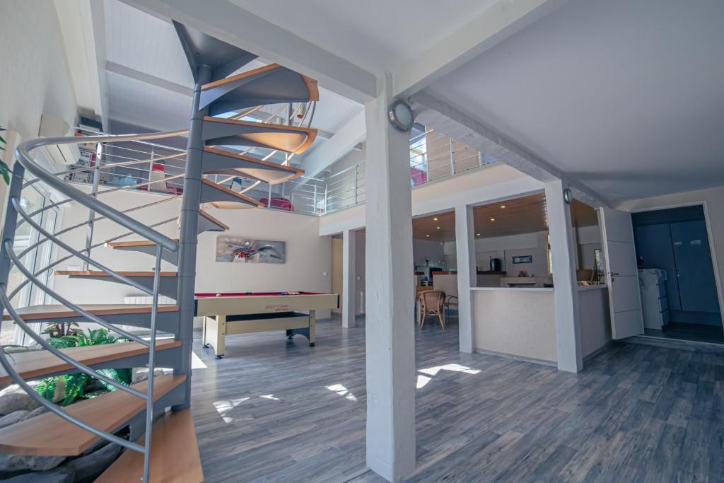 Situé à Soulac-sur-Mer, l’hébergement VILLA piscine-spa-sauna, 25 personnes, 5 mn océan propose une piscine extérieure ouverte en saison, un sauna et un bain à remous. Il dispose également d’une terrasse offrant une vue sur la piscine et le jardin. Cet hébergement met à votre disposition un billard, une table de ping-pong et un parking privé gratuit.