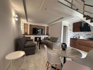 The apartment provides guests with a terrace, mountain views, a seating area, cable flat-screen TV, a fully equipped kitchen with an oven and a toaster, and a private bathroom with shower. A fridge, a stovetop and minibar are also provided, as well as a coffee machine and a kettle. At the apartment complex, each unit is equipped with bed linen and towels.