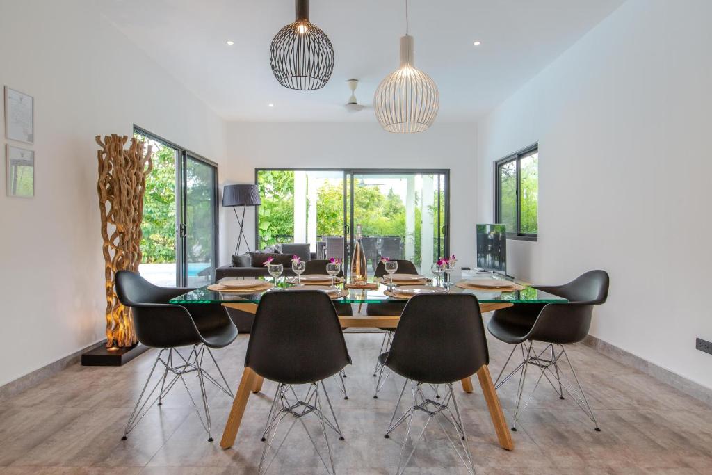 Cette villa comporte 2 chambres, 1 salle de bains, du linge de lit, des serviettes, une télévision à écran plat, un coin repas, une cuisine entièrement équipée et une terrasse offrant une vue sur la piscine.