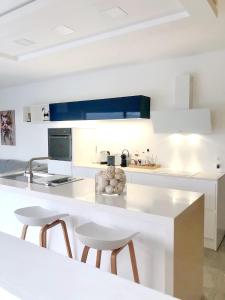Cette villa comporte 3 chambres, 3 salles de bains, du linge de lit, des serviettes, une télévision à écran plat avec les chaînes du satellite, un coin repas, une cuisine entièrement équipée et une terrasse offrant une vue sur la mer.